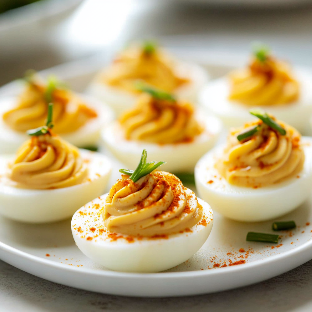 Deviled eggs are a timeless appetizer that combines creamy yolks with a zesty kick, making them a hit at any gathering. Perfectly boiled, filled with a rich mixture of mayo and mustard, and topped with paprika, these delightful bites are not just easy to make but also customizable to suit your taste.