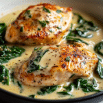 Creamy garlic chicken with spinach is the ultimate comfort food, combining tender chicken breasts in a rich, velvety sauce infused with aromatic garlic and vibrant spinach. Perfect for a cozy weeknight dinner or an impressive dish for guests, this recipe promises to delight your taste buds and bring smiles around the table. Easy to prepare and visually stunning, it’s sure to become a family favorite.