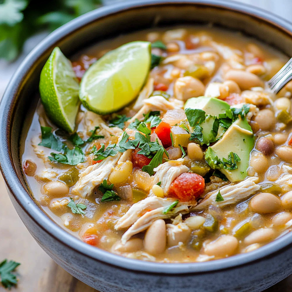 Warm up with this comforting white chicken chili, perfect for chilly nights. Juicy chicken combines with creamy white beans and zesty spices to create a deliciously hearty dish. Easy to prepare in your slow cooker, this recipe is ideal for busy weeknights or cozy gatherings with friends and family.