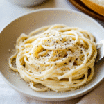 Plate your cacio e pepe while still hot! Garnish with extra cheese and cracked pepper on top if you’re feeling fancy—because who doesn’t want more cheese?