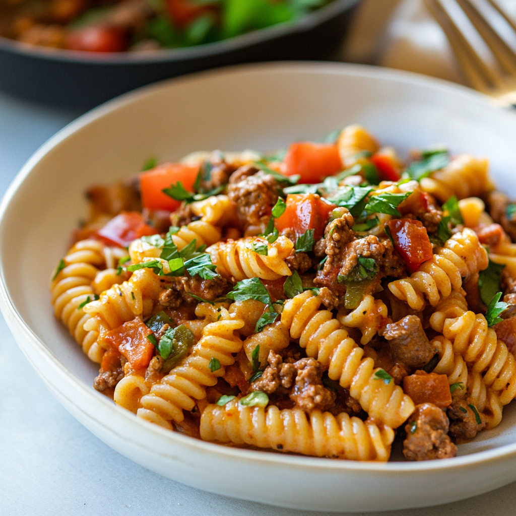 Mix in Pasta: Drain the cooked pasta and add it directly to your skillet with the meat mixture. Toss everything together so every noodle is coated in that delightful sauce—it’s like giving your pasta a warm hug!