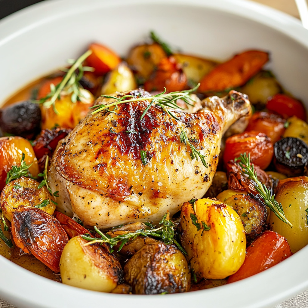 Roasted chicken and vegetables create a comforting, flavorful meal that’s perfect for any occasion. With its golden-brown chicken and colorful array of veggies, this dish is not only easy to prepare but also offers a delightful blend of textures and tastes. The irresistible aroma fills your kitchen as it roasts, making it an instant family favorite. Whether it’s a cozy weeknight dinner or a Sunday feast, this recipe is sure to impress everyone at the table.